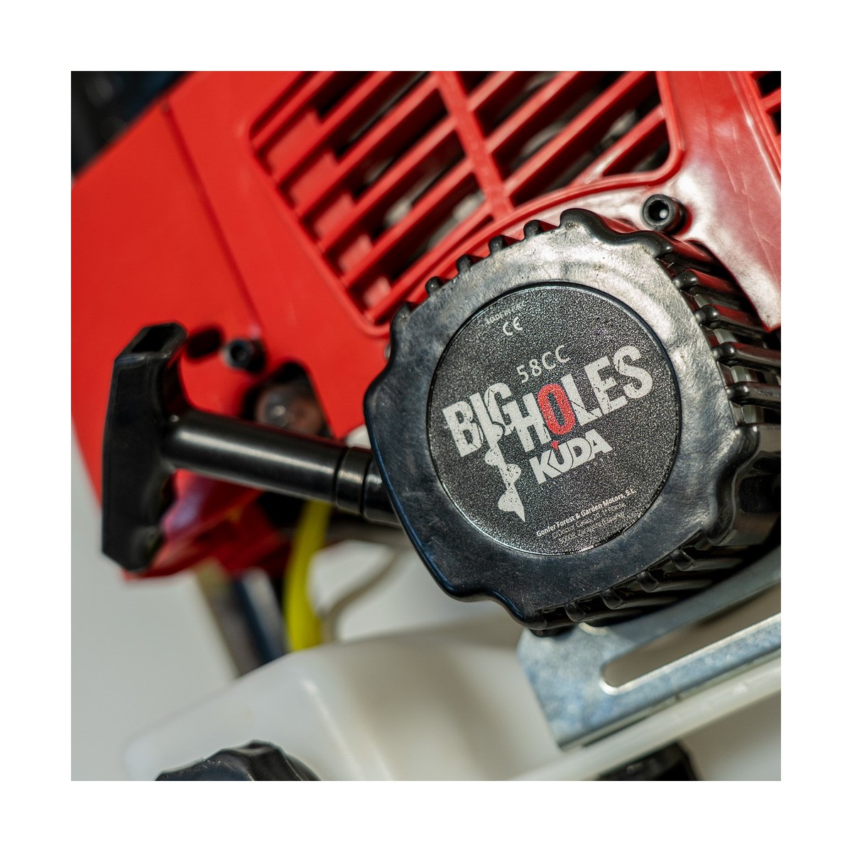 Esta fantástica máquina ahoyadora de dos tiempos está equipada con un motor a gasolina que efectúa gran potencia (2,95cv) durante su funcionamiento. La cilindrada es de 58cc, y lleva un sistema de arranque rápido y suave para que la puesta en marcha sea mucho más sencilla.