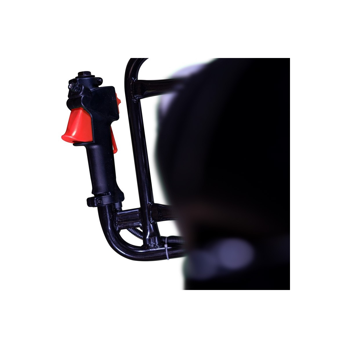 El agarre para su manejo es muy ergonómico y se adaptará perfectamente a nuestras manos, para hacernos sentir confiados durante el funcionamiento y poder trabajar confortablemente. En el manillar encontramos también, con un acceso muy fácil, el control del aparato.