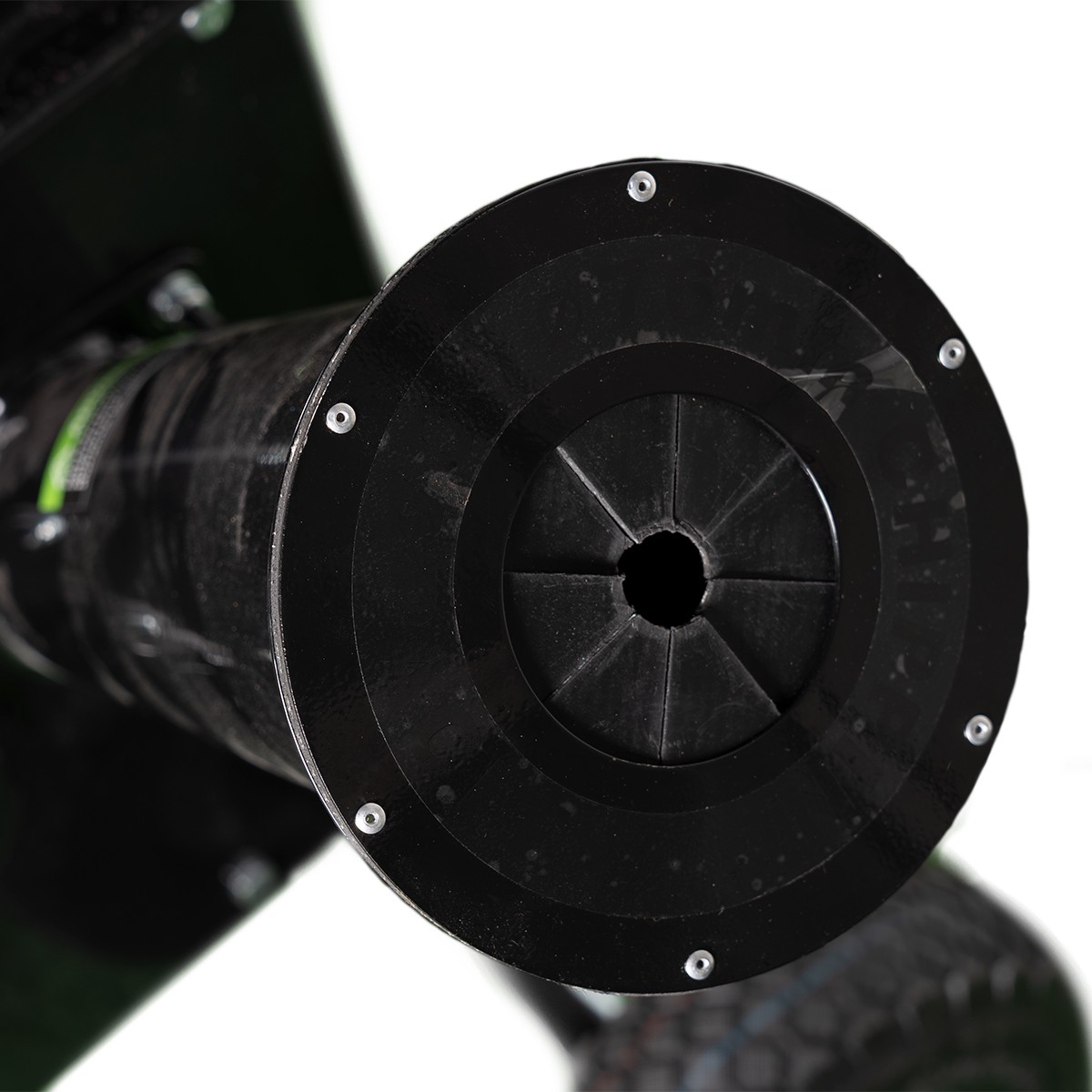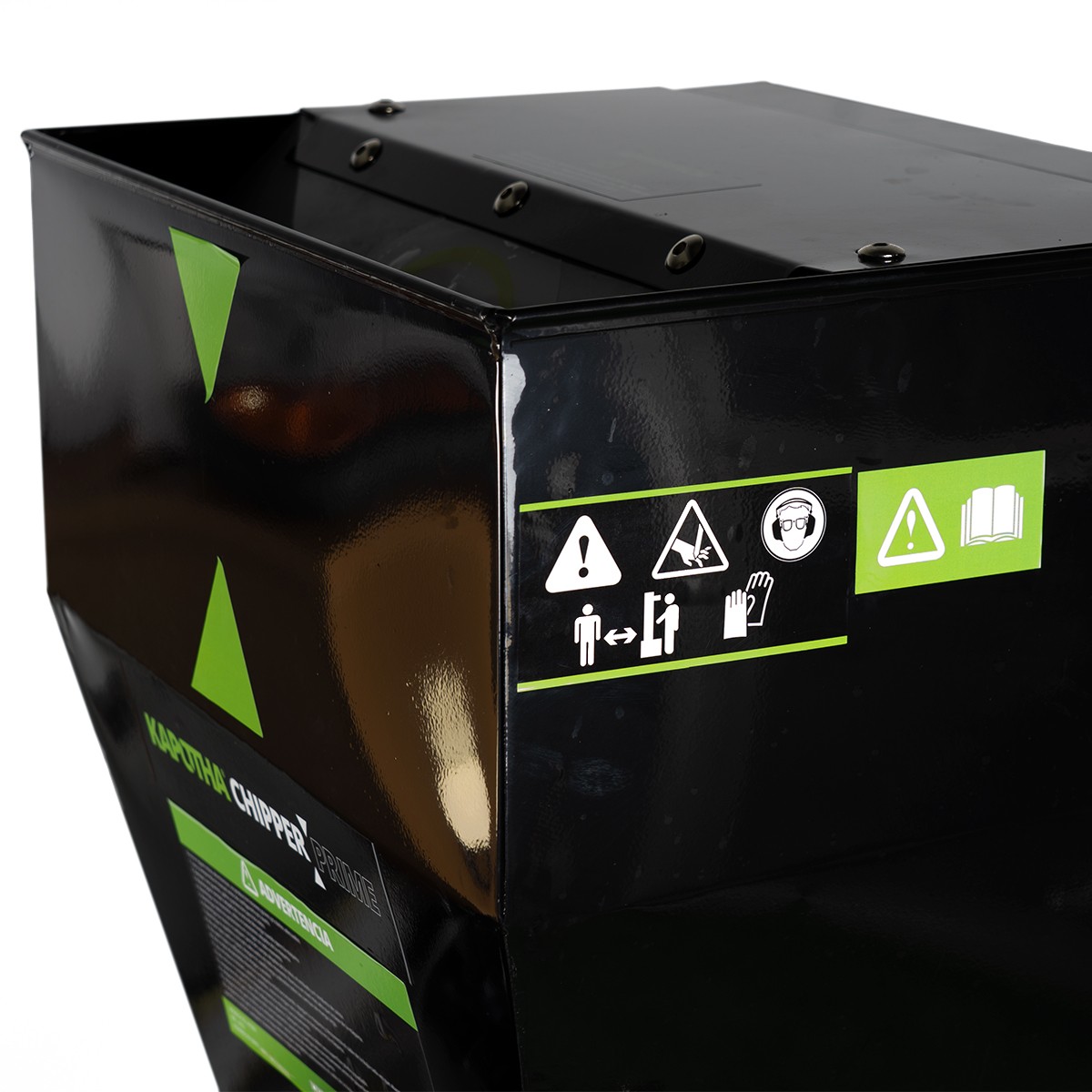 La tolva está provista por una boca ancha con estrechamiento para evitar accidentes, y está indicada para el ramaje más delgado pero a su vez voluminoso, pudiendo alimentar la máquina con grandes brazadas de ramaje. Una vez la máquina alimentada los desechos saldrán por la parte baja de la máquina en pequeñas astillas fáciles de compostar. Todo ello es posible gracias a sus 20 martillos afilados, que cortan y trituran las ramas sin problemas