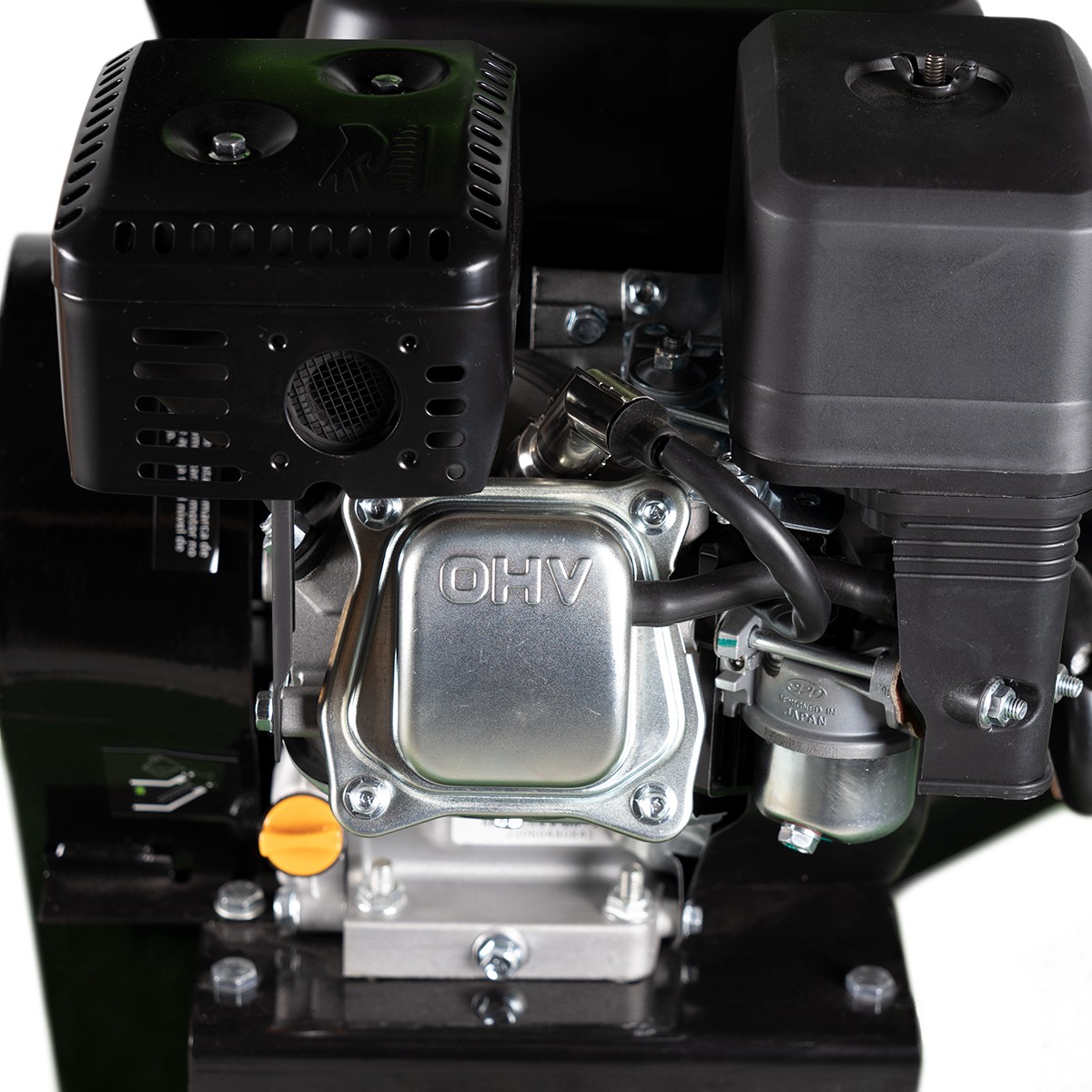 Gracias a sus 6,5cv y sus 196cc tiene potencia más que suficiente para poder triturar hasta ramas de 76mm de diámetro. Ésto lo hará gracias al doble sistema de triturado que explicamos a continuación.