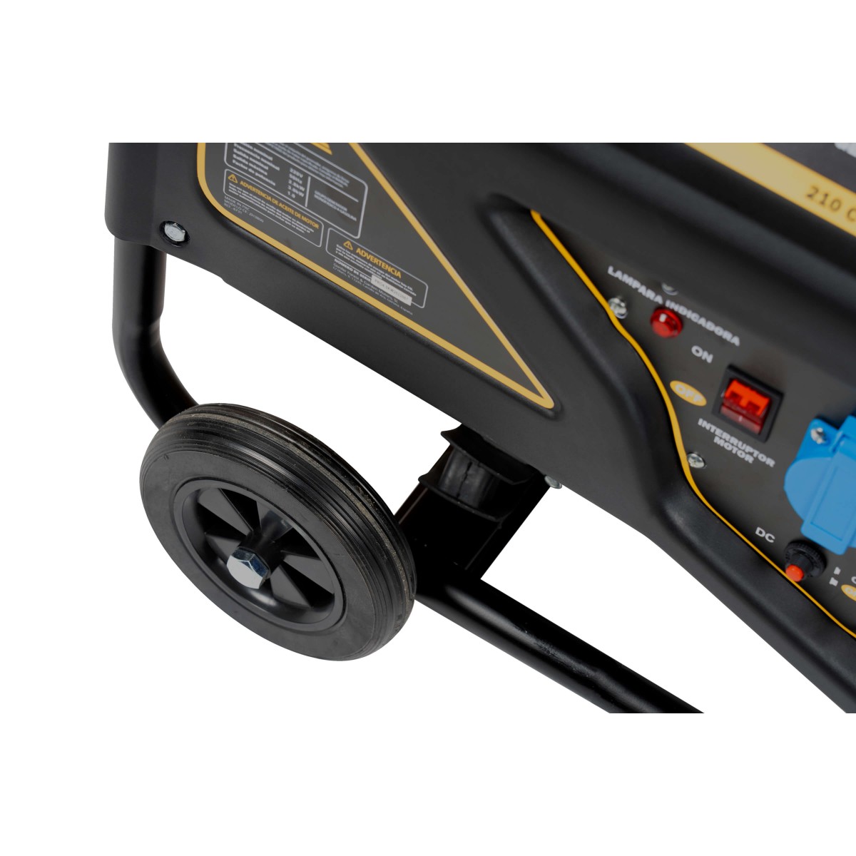 Lleva incorporadas unas ruedas para poder transportar el generador con facilidad. Solo tendrá que tirar de ambas asas, inclinar el generador y así darle una completa funcionalidad a las ruedas. Transportar el generador de un lado a otro no será mayor dificultad gracias a sus componentes exteriores incluso si se tiene en cuenta el peso del mismo (46 Kg). No lo piense más y adquiera esta eficiente máquina.