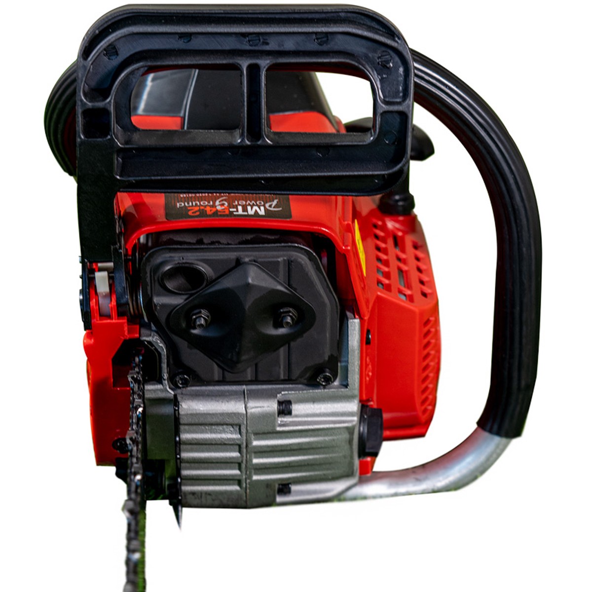 Otro aspecto a destacar de su sistema técnico interno es el embrague sobredimensionado tratado cerámicamente, que evitará la pérdida de fuerza durante el trabajo a causa de la temperatura. Además, su cigüeñal tiene la capacidad de accionar una bomba metálica que mantiene la espada y cadena perfectamente engrasadas. Así obtendremos mayor durabilidad, un corte impecable y reduciremos el mantenimiento y agotamiento de los materiales.